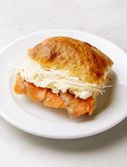 フィリングに合わせて焼き上げたバンズに、つくりたてのデリカやイタリア産のハムをはさみます。